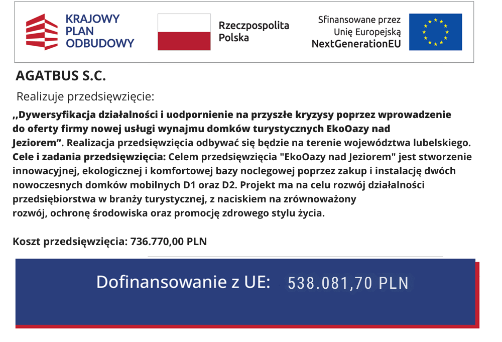 Każdy domek EkoOazy to całoroczny, w pełni wyposażony obiekt klasy premium, oferujący: